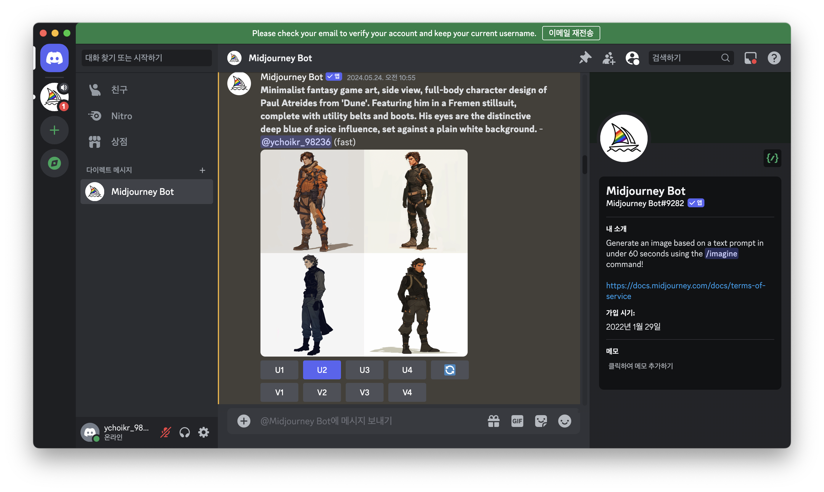 이번 학기에 수강하고 있는 ⟪게임엔진(Unity)⟫ 수업에서는 게임 애셋 제작법을 따로 가르치지 않는다. 애셋을 준비하는 것도 게임 제작 과정의 일부이긴 하지만, 프로그래밍보다는 미술의 영역에 가깝기 때문이다. 내가 일하는 출판사에서 얼마 전에 미드저니로 게임 애셋을 제작하는 주제의 책이 나왔는데, 이 책으로 2주간 스터디를 연다고 해서 참여했다. 총 8회의 과제를 통해 게임 애셋을 제작하고 적용해 WebGL로 배포하는 과정을 수행했다. 배경과 발판(platform), 캐릭터, UI, 아이템까지 모두 미드저니로 생성한 뒤 포토샵으로 추출해 유니티에서 스프라이트로 활용했다. 미드저니에 새로 가입해서 처음 사용해 봤는데, DALL·E와 스테이블 디퓨전을 많이 써봐서 그리 어렵지 않았다.포토샵도 십 년만에 다..
